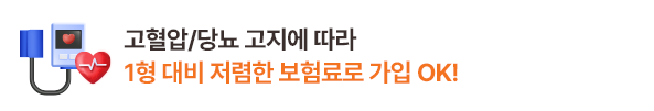 1형 (3.10.5간편고지형) 2형(3.10.5간편고지형(고혈압추가고지)) 3형(3.10.5간편고지형(당뇨추가고지)) 4형(3.10.5간편고지형(고혈압및당뇨추가고지)) 5형(385간편고지형) 6형 (385간편고지형(고혈압추가고지)) 7형(385간편고지형(당뇨추가고지)) 8형(385간편고지형(고혈압및당뇨추가고지)) 9형(365간편고지형) 10형(365간편고지형(고혈압추가고지)) 11형(365간편고지형(당뇨추가고지)) 12형(365간편고지형(고혈압및당뇨추가고지)) |