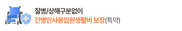 | 간병인사용입원생활비(상급종합병원,연간180일한도)(간편) | 보험기간 중 질병 또는 상해의 직접 결과로써 생활기능 또는 업무능력에 지장을 가져와 상급종합병원에 입원하여 치료를 받으며 간병인을 사용하여 실질적으로 간병서비스를 이용한 경우 간병인을 사용한 입원 1일 당 보험가입금액 지급 (지급일수는 연간 180일 한도)