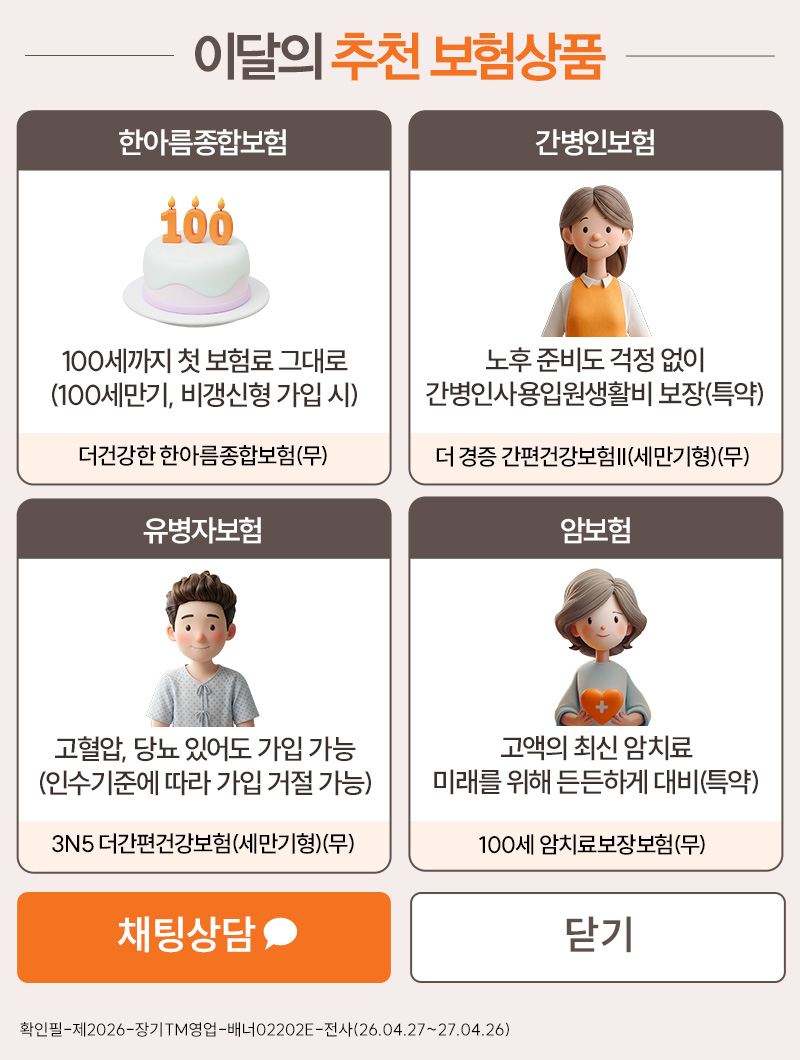 05~40세 가입 가능한 청년 맞춤 종합보험! 암, 뇌, 심장 질환 미리 대비하세요